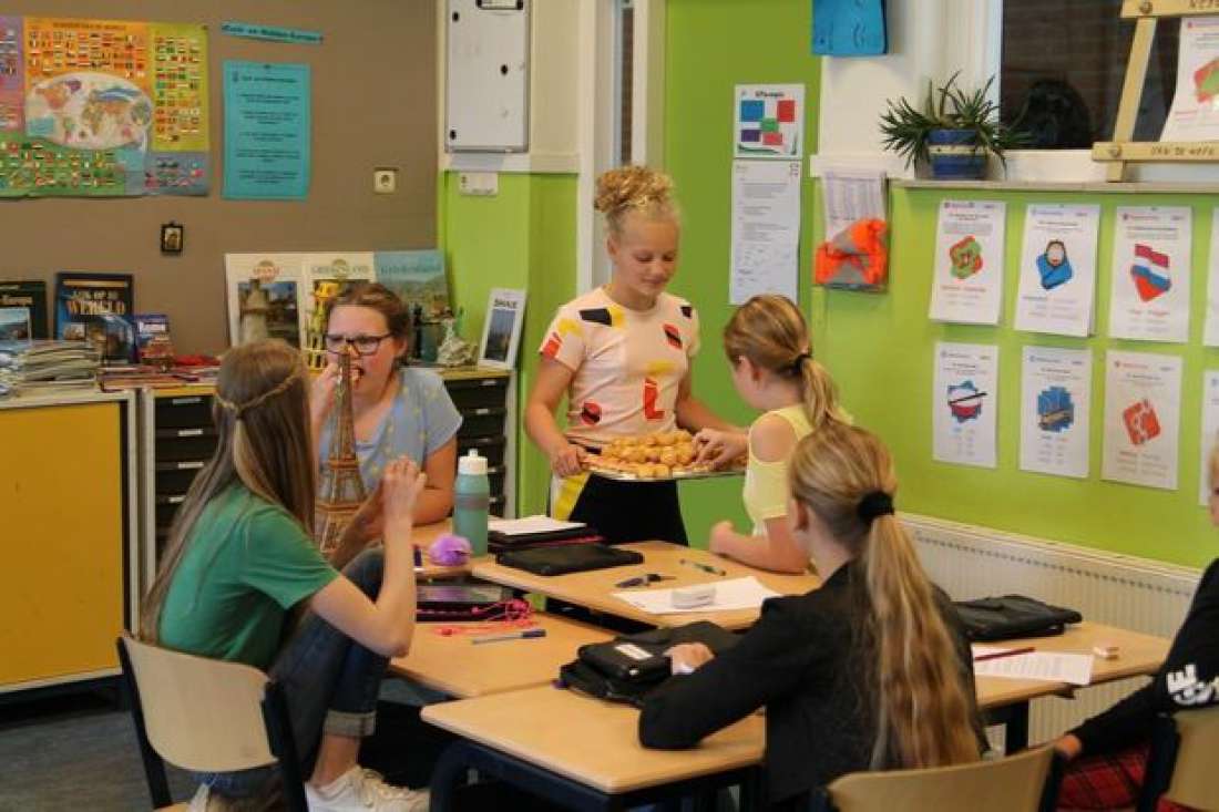 De ruim twintig leerlingen werden vorige week blij verrast door de komst van de docenten Rolink en Langen.